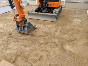 そしてお客様のご希望により、下地材として山砂を敷き込みました。