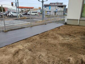 厚手で耐久性の高い防草シートを丁寧に敷設し、雑草の発生を抑えます。